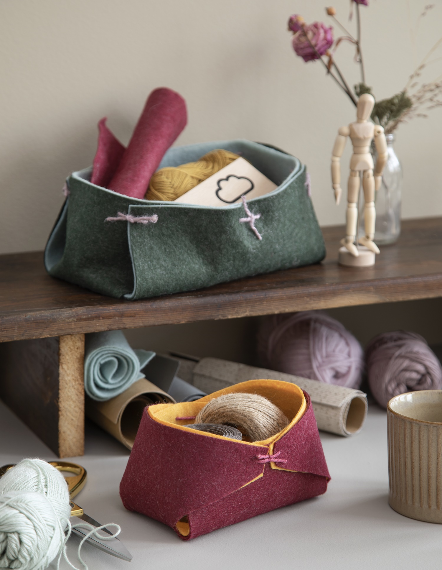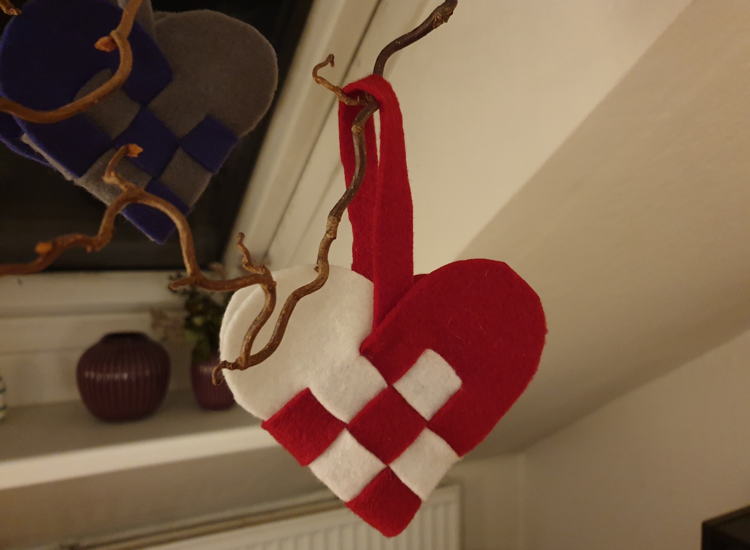 Flettede julehjerter i filt